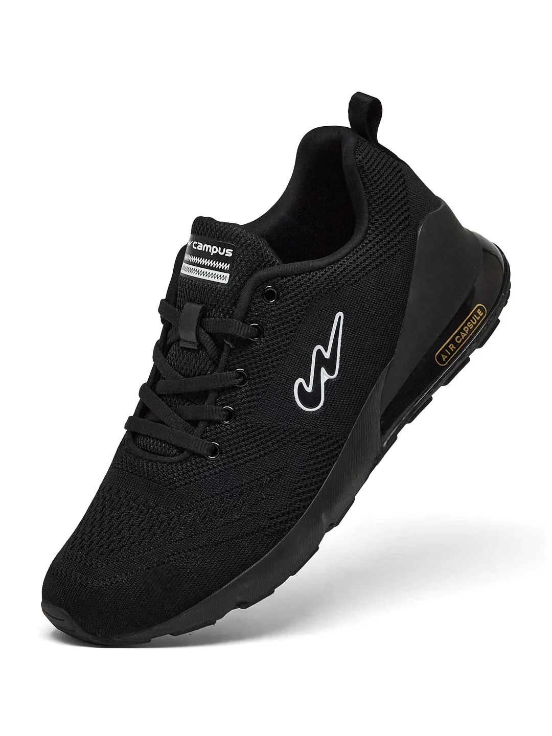 Game changers and stylishly comfortable, North Plus Running Shoes by Campus are a dream! All thanks to the air capsule unit, these shoes deliver unmatched cushioning. Featuring a mesh upper made of premium quality, this stunning pair comes with a breathable and moisture-absorbent lining that helps keep your feet fresh all day long. The memory foam insole further takes the shape of your feet, so every step is wrapped in comfort. Ultimately, the sleek, minimal design, monochromatic black, and lace-up closure seal the deal and make this a crowd-puller.