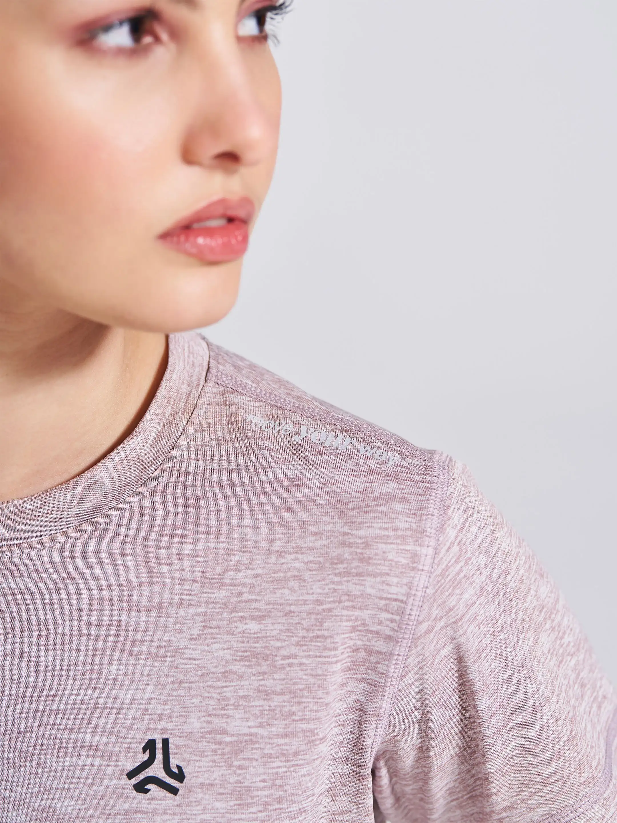 Light, sporty, and ready to move — the Campus Round Neck Dry-Fit T-Shirt is made for days when you're on your feet and in your flow. The grindle jersey fabric brings that cool melange effect, giving the tee a dual-tone, athletic edge that looks sharp. The fabric stays airy and quick-drying, so whether you're power-walking, stretching, or running errands, you stay comfortable. Plus, the 2-way stretch, anti-odor freshness, and reflective strip keep it practical and performance-ready. The soft mauve adds a hint of style to your active days — cute, sporty, and super wearable.